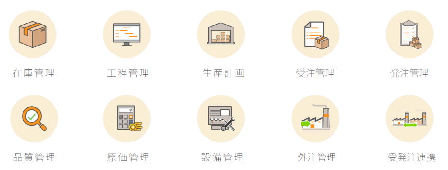 (在庫管理システム・工程管理システム・生産計画システム・受注管理システム・発注管理システム・品質管理システム・原価管理システム・設備管理システム・外注管理システム・受発注連携システムに対応!)